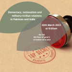 The discussion will center on three main components: the similarities and differences between India and Pakistan in terms of democratic governance; the impact and challenges of religious nationalism; and the impact of the military and security apparatuses in both countries on democracy, governance and citizen engagement.