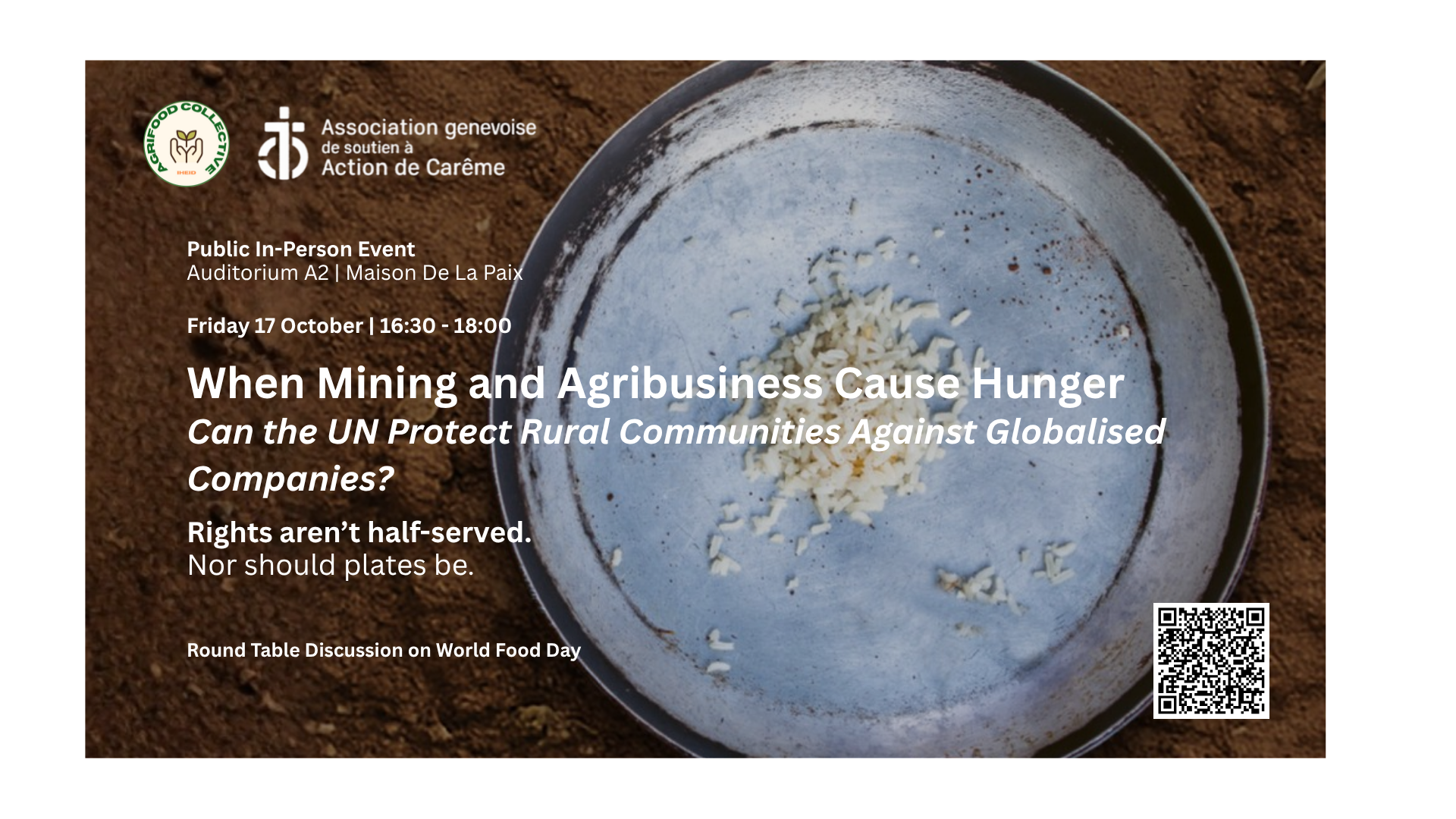 In many parts of the Global South, extractive industries and industrial agribusiness are threatening the right to food. Communities face land grabs, environmental destruction, and the loss of livelihoods. As the UN moves toward a binding Treaty on business and human rights, this round table brings together voices from Africa, civil society, diplomacy, and academia to discuss two central questions: