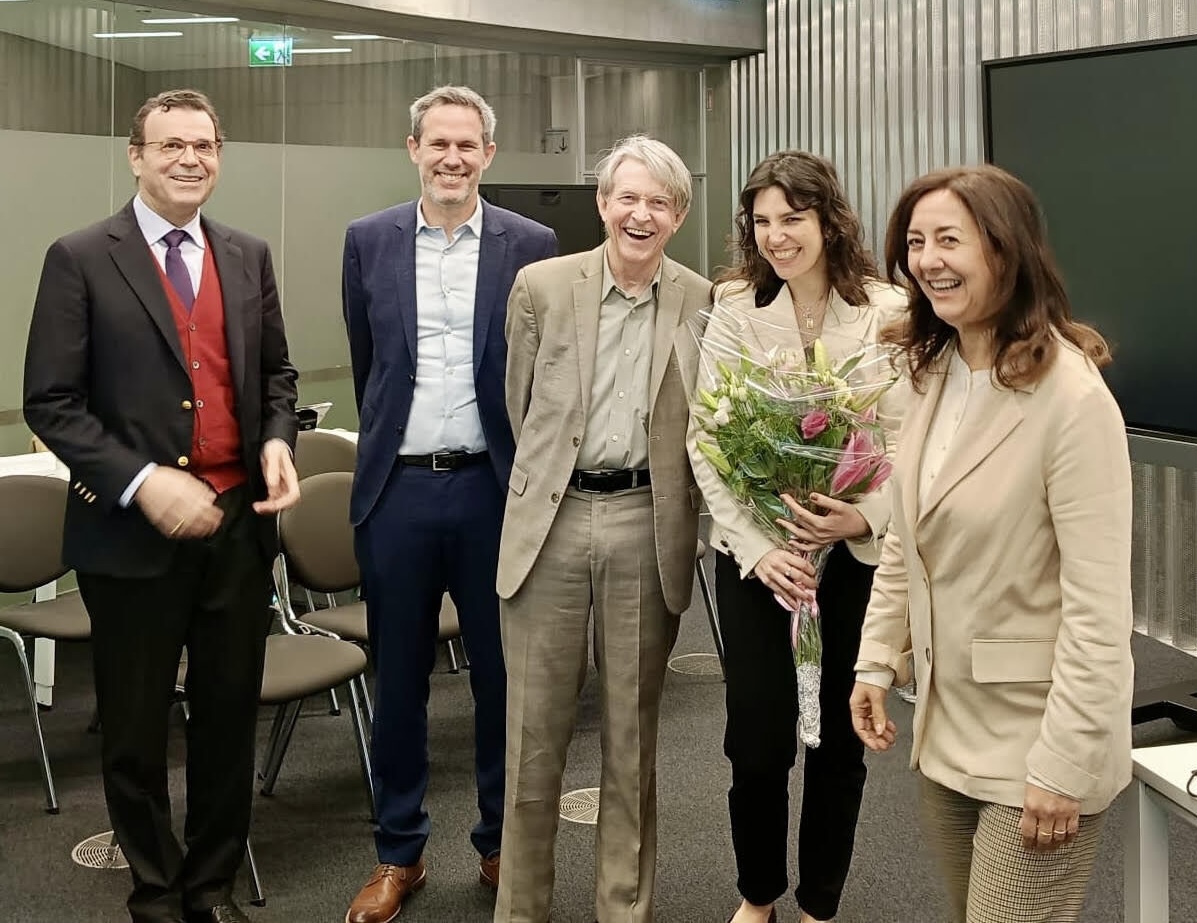 Marzia Marastoni defended her PhD thesis in International Law, titled “To Perceive or Misperceive Crises in International Law: The Role of Black Swans in International Legal Discourse”, on 27 March 2025. Adjunct Professor Maria Neus Torbisco Casals (right) presided over the committee, which included Professor Nico Krisch (second from the left), Thesis Co-Supervisor; Professor Alexis Keller (left), University of Geneva, Thesis Co-Supervisor; and Professor Conor Gearty, London School of Economics and Political Science, UK.