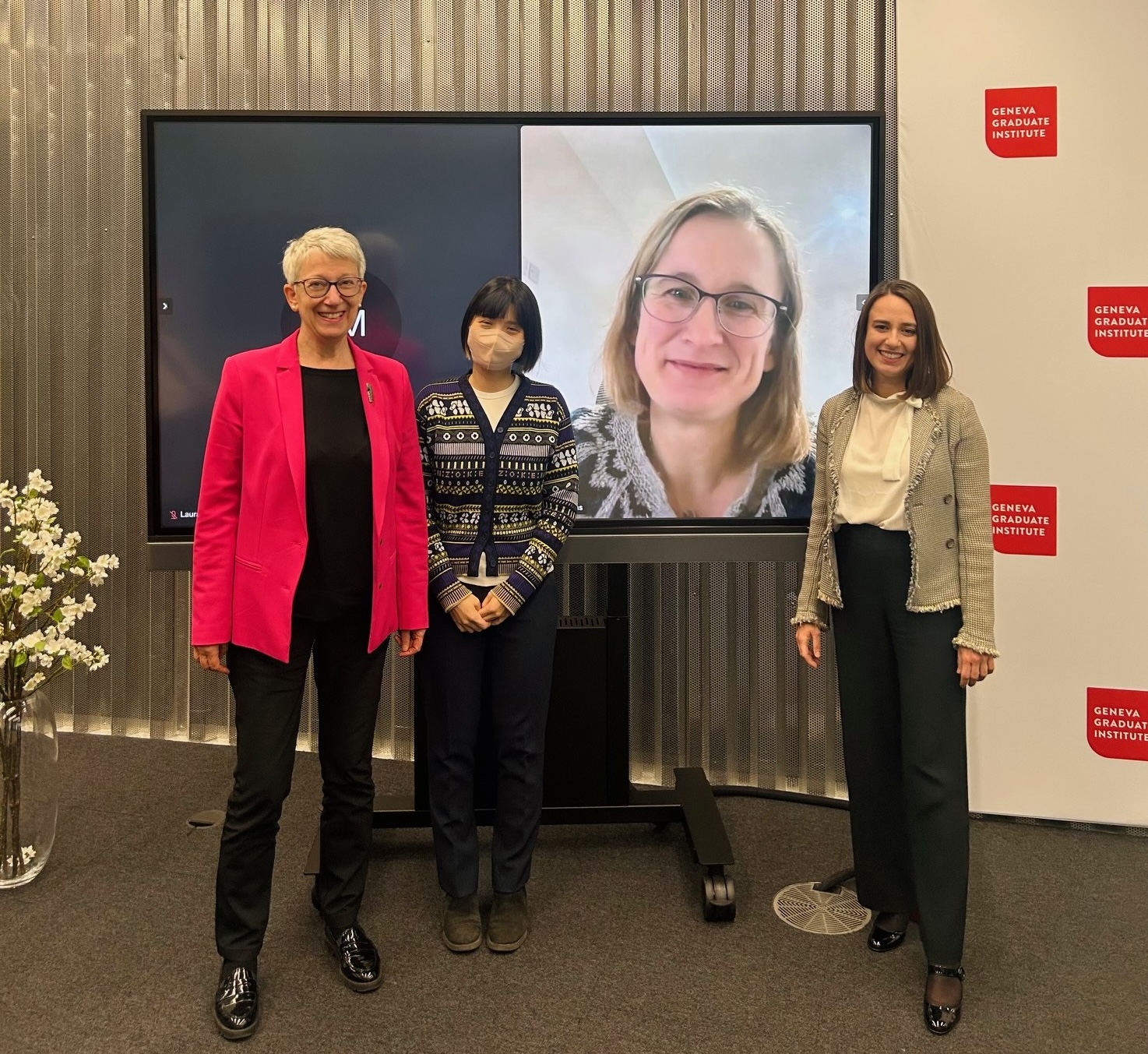 Luisa Lupo (right) defended her PhD thesis in International Relations/Political Science, titled “Cotton Wars: The Politics of Life and Labor in Southeast Turkey”, on 14 November 2025. Committee members were Honorary Professor Elisabeth Prügl (left), Thesis Director; Associate Professor Sung Min Rho (second from the left), President of the Committee and Internal Member; and Professor Juanita Elias, Politics and International Studies, University of Warwick, UK.