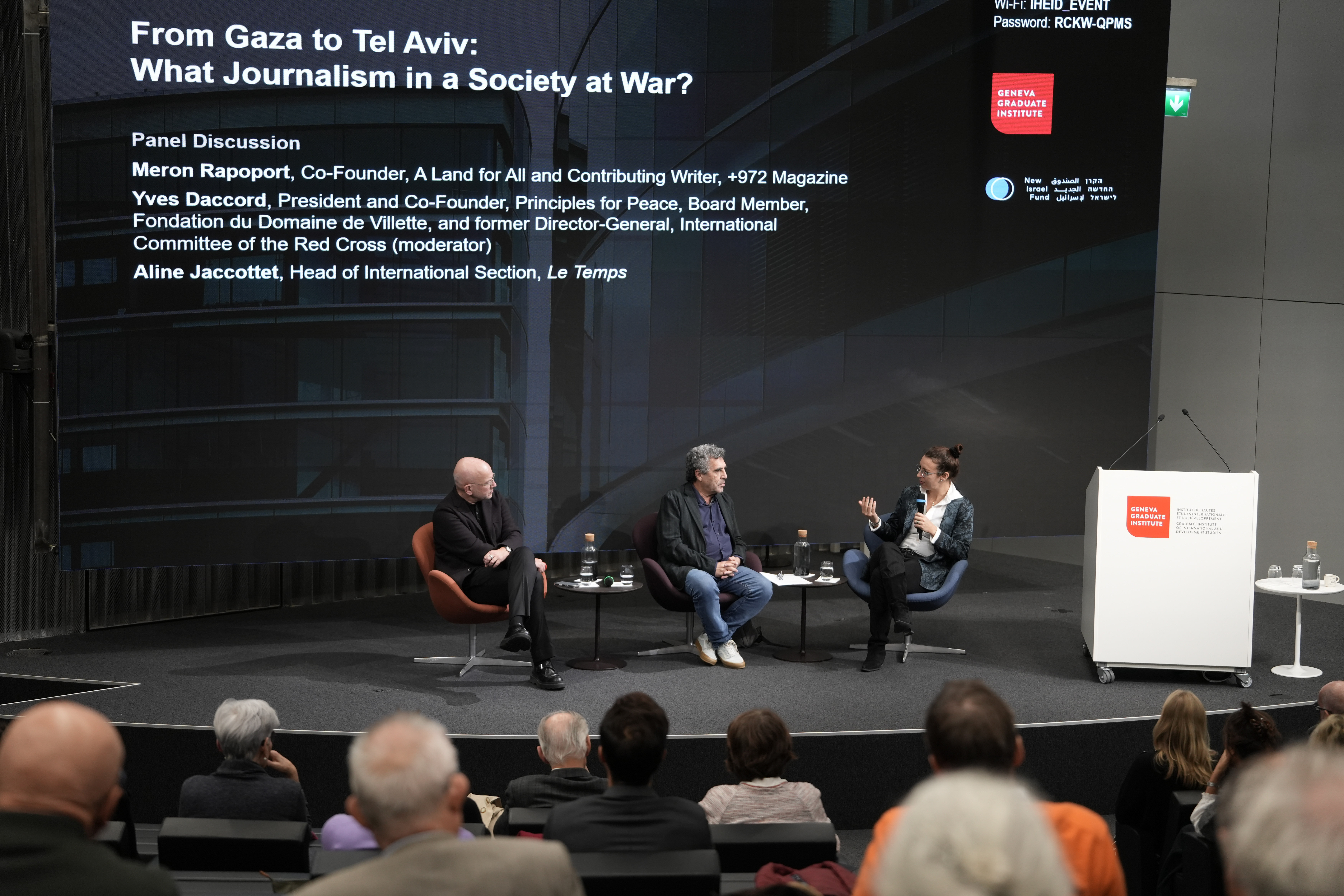 Meron Rapoport’s keynote address was followed by a panel discussion with Yves Daccord, President and Co-Founder of Principles for Peace, Board Member of the Fondation du Domaine de Villette, and former Director-General of the International Committee of the Red Cross, and Aline Jaccottet, Head of the International Section at Le Temps.