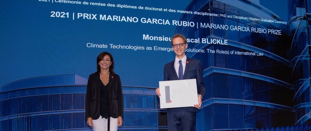 The Mariano Garcia Rubio Prize was created in May 2004 to honour the memory of a former assistant in the International Law Department. It is awarded every year to a student who writes the best master dissertation in international law. This years, on 29 September, the prize was awarded to Pascal Blickle for his master thesis 'Climate technologies as emergent solutions: the role(s) of International Law'.
