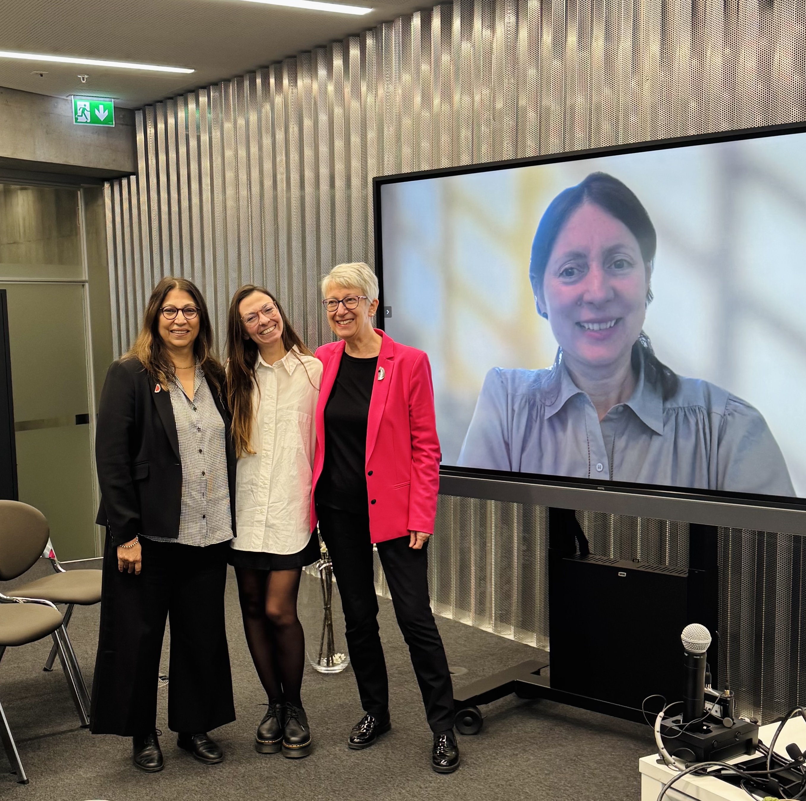 On 24 October 2025, Carolina Fontes dos Santos (second from the left) defended her PhD thesis in International Relations/Political Science, titled “Weaving a Patchwork Political Project: Transnational Feminist Mobilization and the Struggles of Peasant and Rural Women in Brazil”. Professor Annabelle Littoz-Monnet (right) presided over the committee, which included Honorary Professor Elisabeth Prügl (second from the right), Thesis Director, and Professor Shirin Rai (left), Department of Politics and International Studies, SOAS University of London, UK.