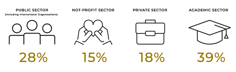 - university-level teaching and research, think tanks, international foundations, media, etc.