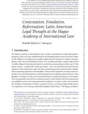 Contestation, emulation, reformation Latin American legal thought at the Hague Academy of International Law