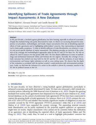 Identifying spillovers of trade agreements through impact assessments a new database