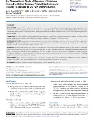 An observational study of regulatory violations related to online tobacco product marketing and retailer responses to US FDA warning letters