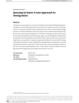 This paper uses queuing theory to examine the linkages between legal and illegal immigration. This approach is particularly appropriate for periods of mass migration and can be used to look at how the magnitude of people trying to migrate affects the choice between legal and illegal channels. An empirical illustration shows how origin-country conflict and past migration differently affect current legal and illegal flows. With data for Schengen countries from Eurostat for documented immigration and the European Agency for the Management of Operational Cooperation at the External Borders of the Member States of the European Union (Frontex) for illegal border crossings (IBCs), I implement a generalized method of moments (GMM) strategy using different estimates of conflict-related deaths and lagged flows of immigration as external and internal instruments, respectively. Violent conflict has a positive and significant effect on IBCs but not on documented migration flows. I find evidence of positive spillovers from the legal channel of immigration into the illegal channel but not vice versa.