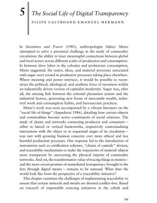 As digital technologies for tracking and tracing mineral commodities continue to expand, this chapter evaluates the role of blockchain-inspired systems and the organizations promoting digital certification technologies in mineral supply chain management. Drawing on research conducted in the cobalt mines of Kolwezi in the Democratic Republic of Congo and in mining sites affiliated with De Beers’ GemFair program in Sierra Leone, the chapter explores two key themes. First, it examines how transparency shapes both cobalt –an essential component for enhancing lithium battery performance – and diamonds – an emblem of hyper-consumption – within the broader digital transformation of the extractive industries. Second, it considers this digital turn as an effort to establish disintermediated trust in certification mechanisms formerly reliant on third-party verification. The chapter argues that, while digital transparency is presented as the pinnacle of technological accountability, it simultaneously operates through practices of concealment.