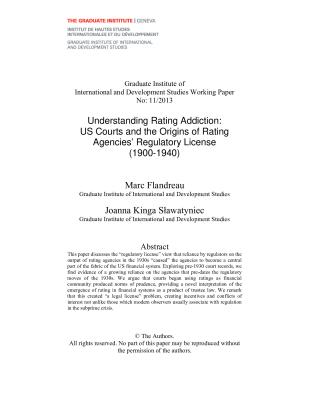 This paper discusses the “regulatory license” view that reliance by regulators on the output of rating agencies in the 1930s “caused” the agencies to become a central part of the fabric of the US financial system. Exploring pre-1930 court records, we find evidence of a growing reliance on the agencies that pre-dates the regulatory moves of the 1930s. We argue that courts began using ratings as financial community produced norms of prudence, providing a novel interpretation of the emergence of rating in financial systems as a product of trustee law. We remark that this created “a legal license” problem, creating incentives and conflicts of interest not unlike those which modern observers usually associate with regulation in the subprime crisis.