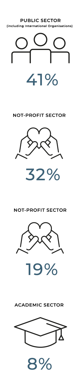 - Private sector, notably multinational companies, the finance sector, law firms, consulting and public relations agencies.