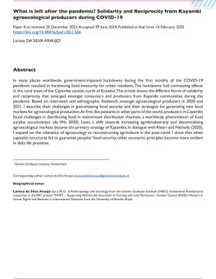 What is left after the pandemic? Solidarity and Reciprocity from Kayambi agroecological producers during COVID-19