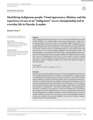 Identifying Indigenous people visual appearance, filiation, and the experience of race in an "Indigenous" soccer championship and in everyday life in Otavalo, Ecuador