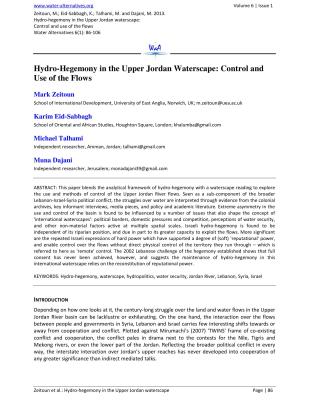 Hydro-hegemony in the Upper Jordan waterscape control and use of the flows