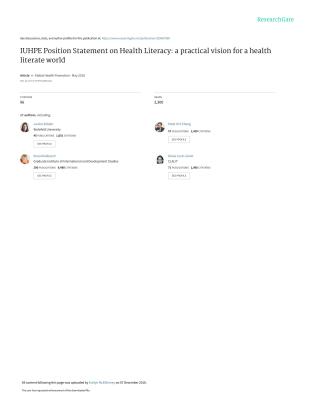 IUHPE Position statement on health literacy a practical vision for a health literate world