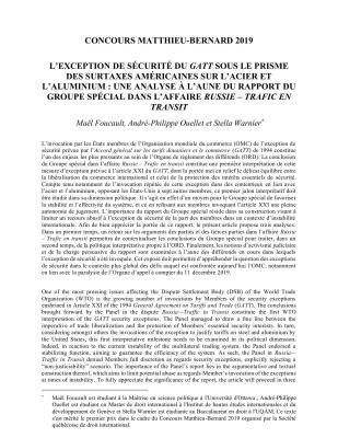 L’exception de sécurité du GATT sous le prisme des surtaxes américaines sur l’acier et l’aluminium une analyse à l’aune du rapport du Groupe spécial dans l’affaire Russie – Trafic en transit