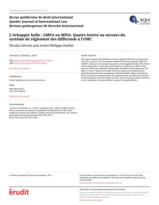 L’échapper belle AMPA ou MPIA : quatre lettres au secours du système de règlement des différends à l’OMC